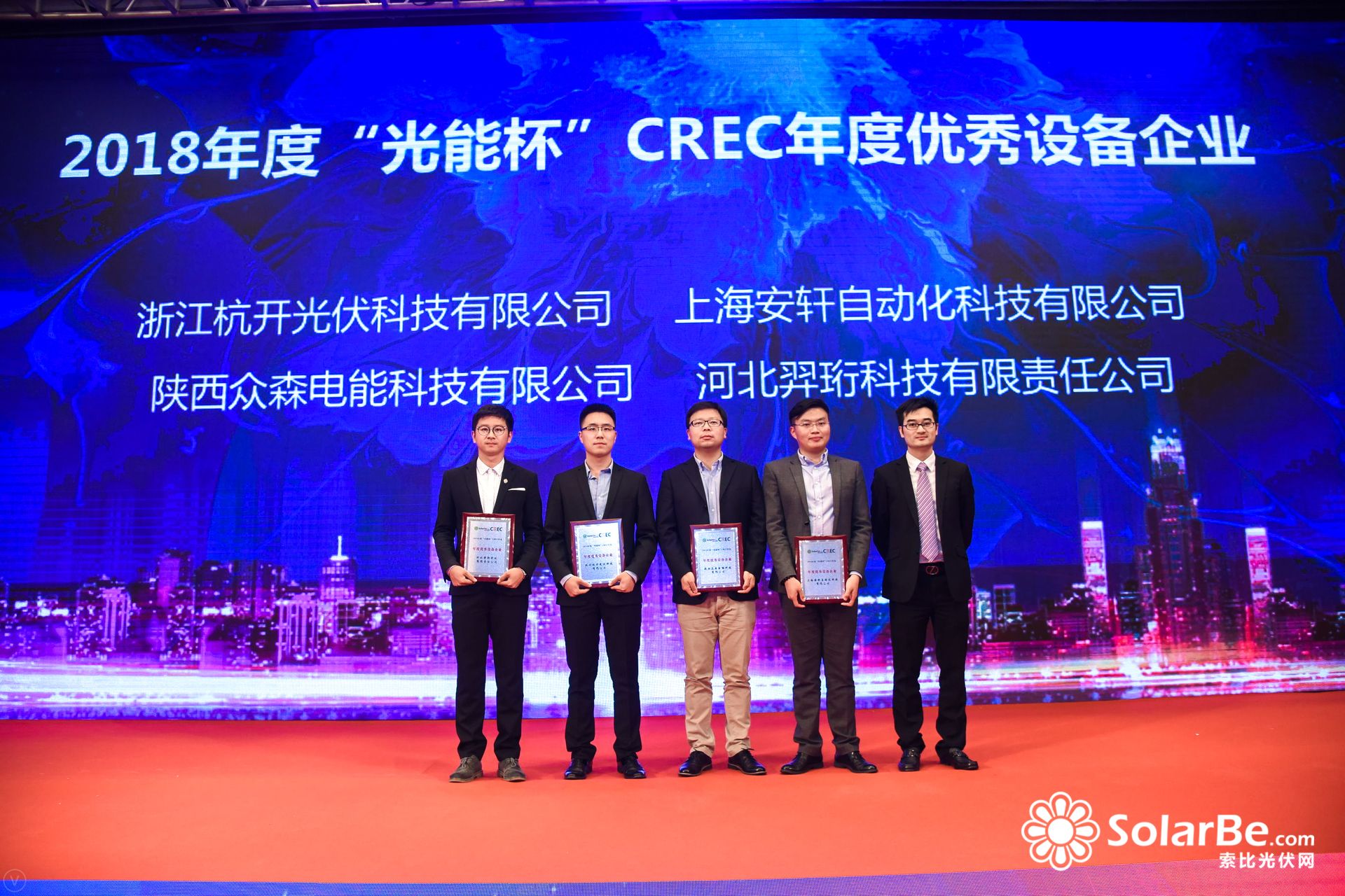 羿珩科技榮獲2018年度“光能杯”CREC年度優秀設備企業大獎 2018年10月31日,由solarbe索比光伏網、中國(無錫)國際新能源大會暨展覽會CREC、《光能》雜志共同主辦的2018 CREC光能杯光伏行業評選年度頒獎典禮在無錫盛大舉行。河北羿珩科技有限責任公司(以下簡稱“羿珩科技”)...